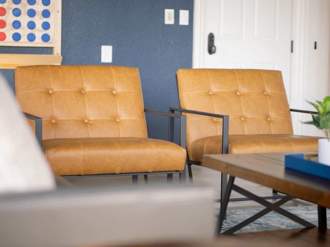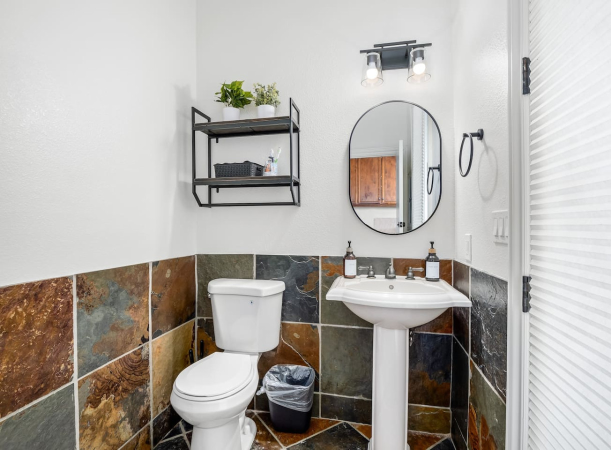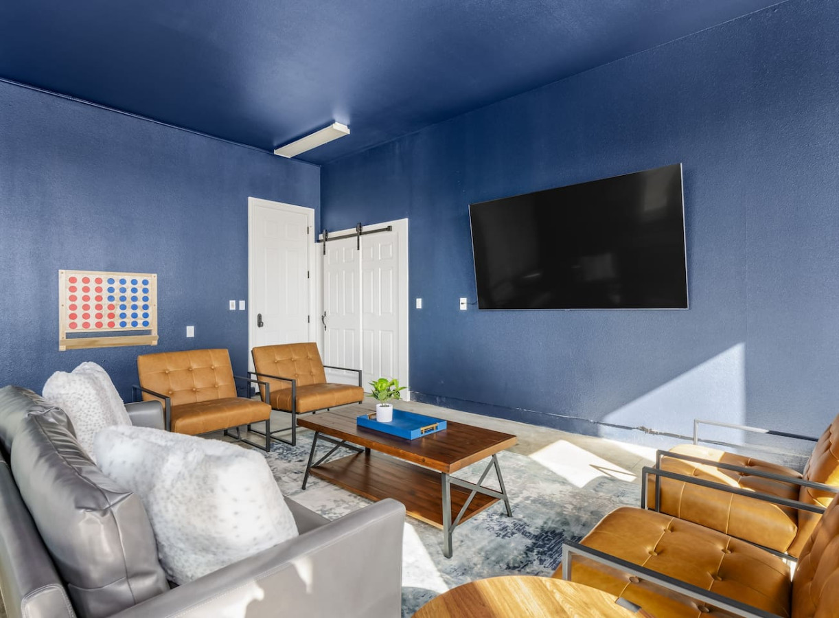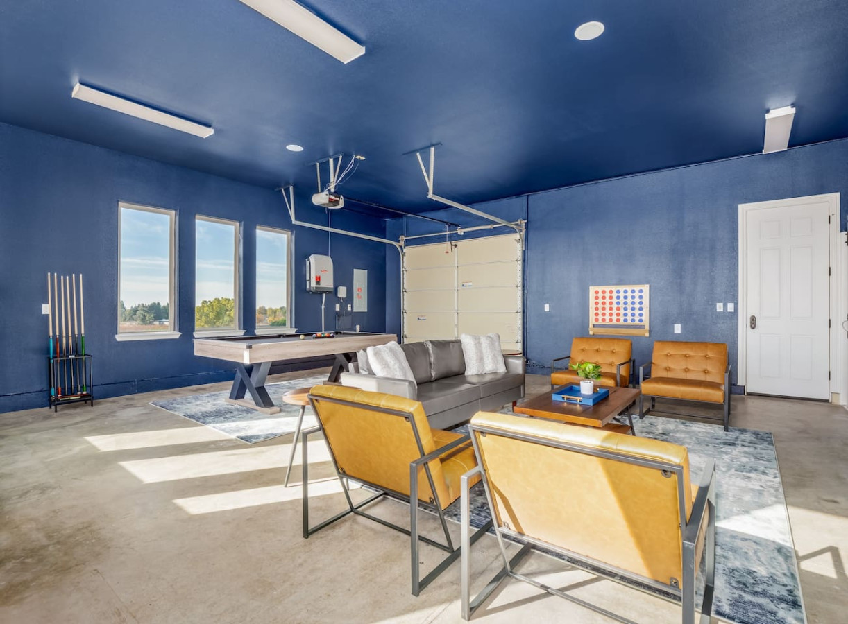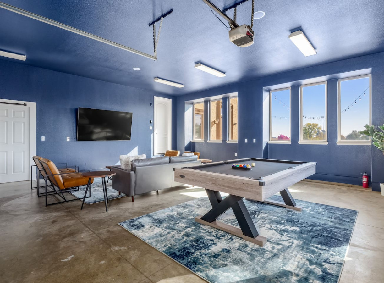 Our main living room is located right off the kitchen and is the perfect place to relax with a glass of wine while watching your favorite TV show. The second living room is our insulated garage that was turned into an entertainment room. This room is equipped with a very large TV to stream all your favorite sports games, a pool table, Connect 4 and even a full bathroom.