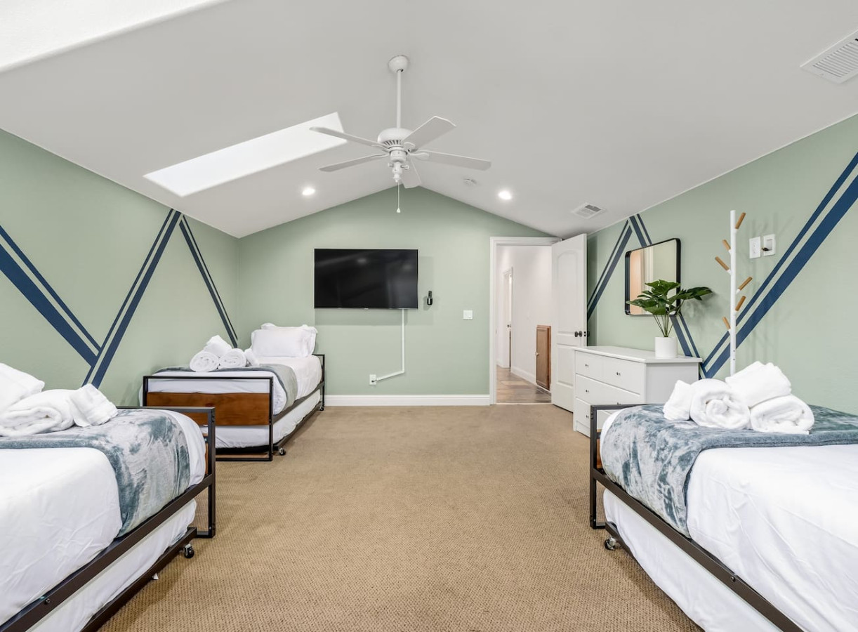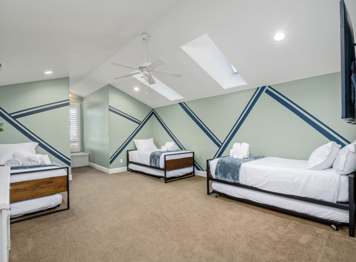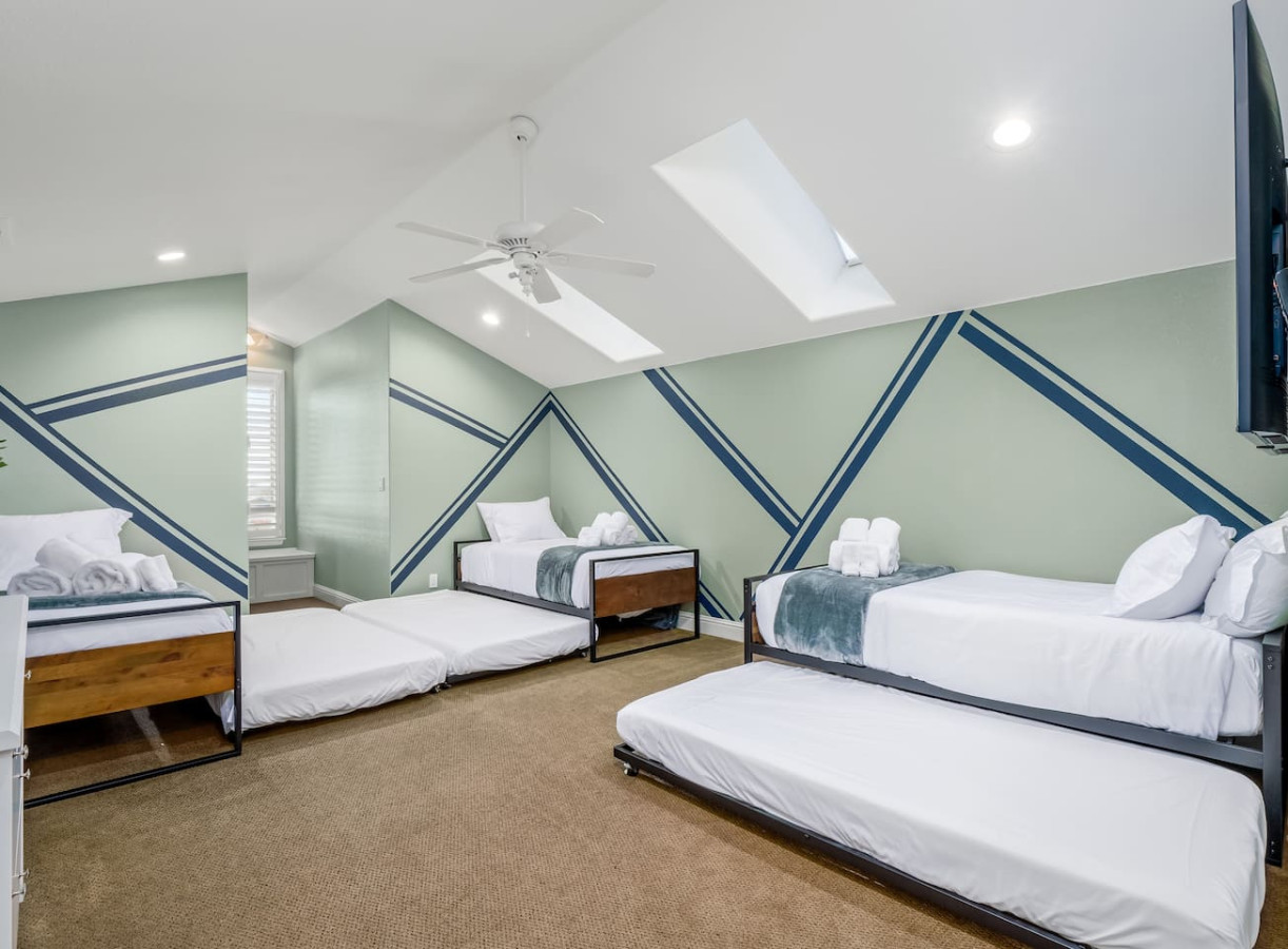 4. Guest room with three twin trundle beds (six twin mattresses).