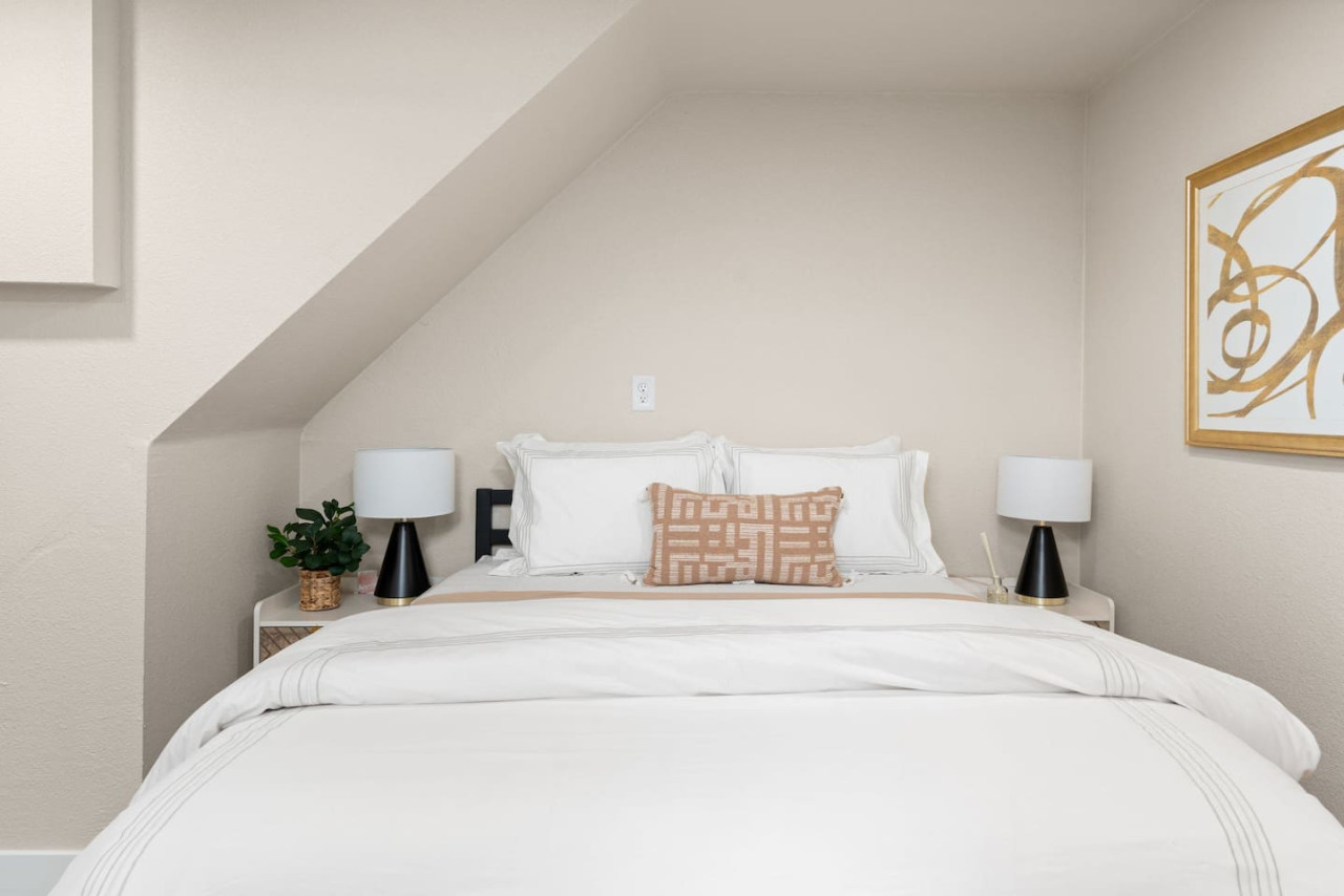 The downstairs features a sleek fully equipped kitchen where you can whip up your favorite breakfast or cook a family dinner meal while enjoying some local wine. As a bonus, the upstairs has a kitchenette, including a small fridge for those staying upstairs who might be hungry for a midnight snack. Please note that the home DOES NOT HAVE A DISHWASHER but we provide a dish sponge, dish soap and a drying rack.