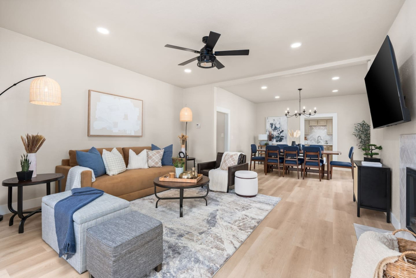 Step into a harmonious blend of history and modernity at our fully renovated 100-year-old home that has been curated into an upstairs and downstairs unit. This space is for the downstairs unit which includes three bedrooms, one bathroom, a kitchen, dining area and living room.