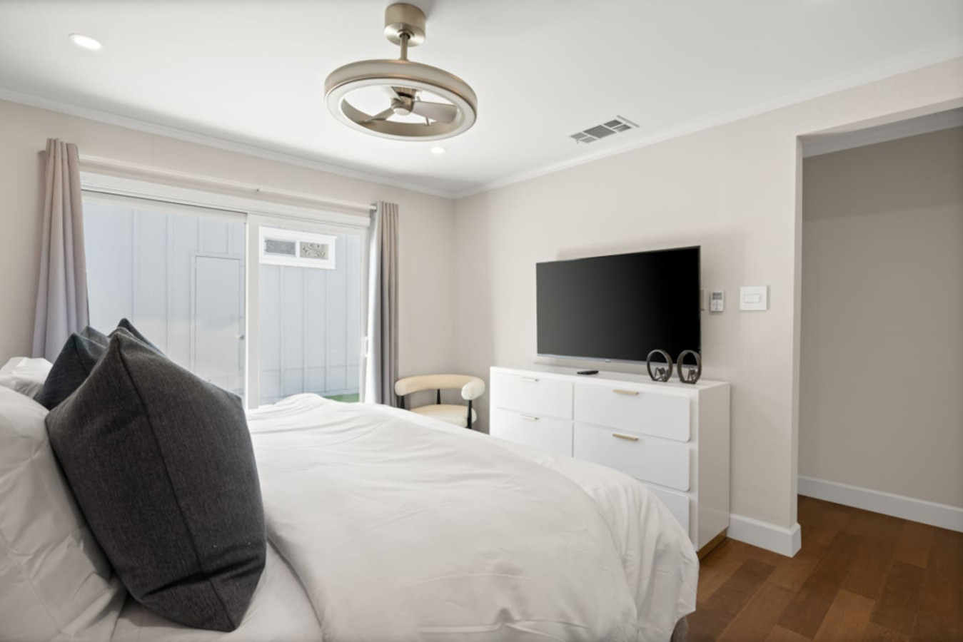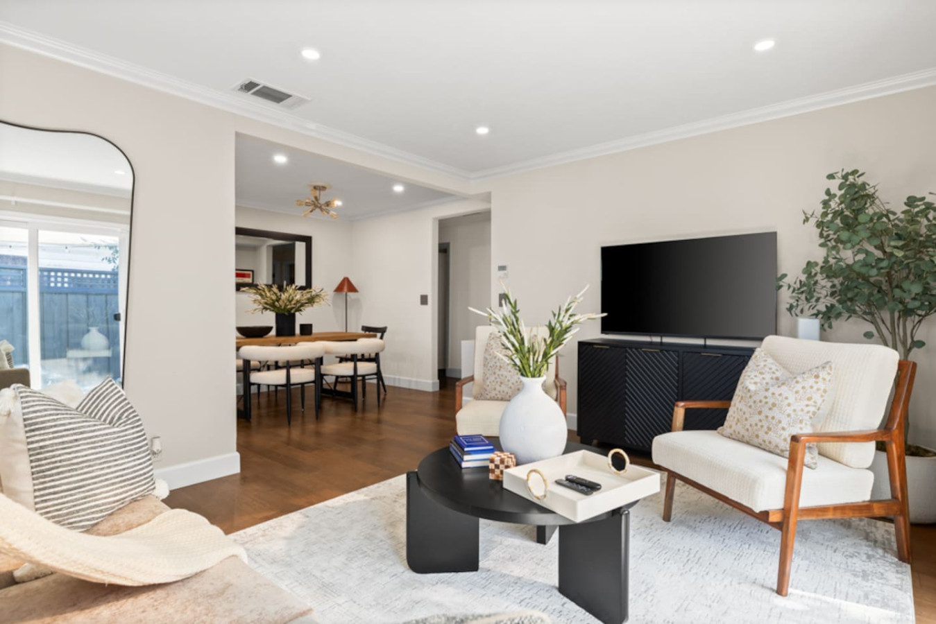 ✔️ Open-concept living room with a smart TV for streaming